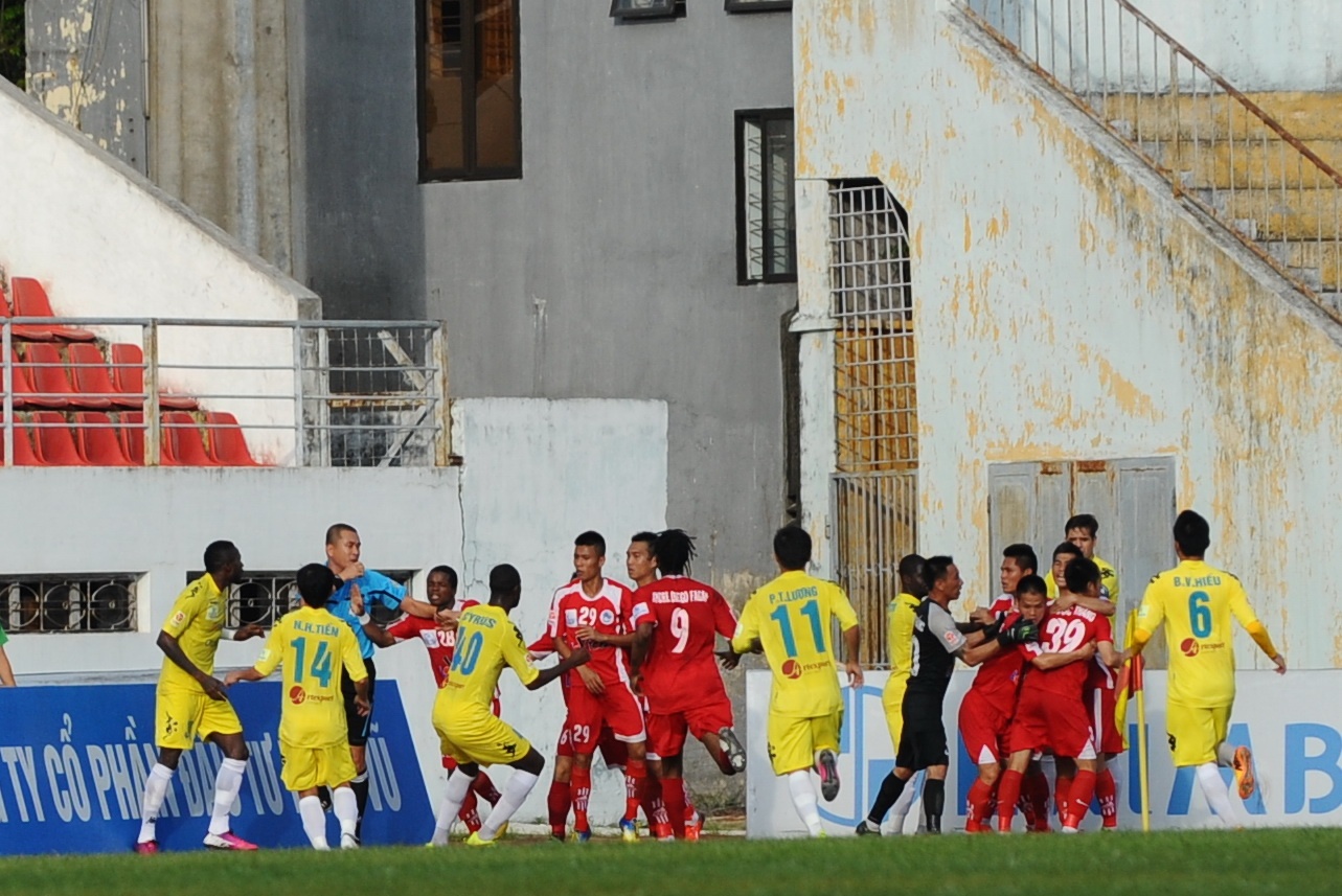 | Pha ẩu đả trong trận Hải Phòng - Hà Nội T&T. |