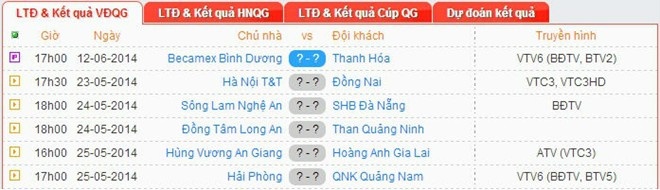Bảng xếp hạng V.League 2014