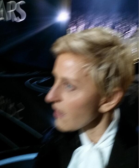 Bên cạnh đó, người dẫn chương trình Oscar 2014, Ellen DeGeneres, cũng gây sửng sốt cho toàn bộ khán giả khi trên sân khấu, cô rút chiếc Galaxy Note 3 ra để… “tự sướng”.Tuy nhiên, có vẻ nữ MC đã rung tay khiến tấm ảnh đăng lên Twitter bị mờ tịt.