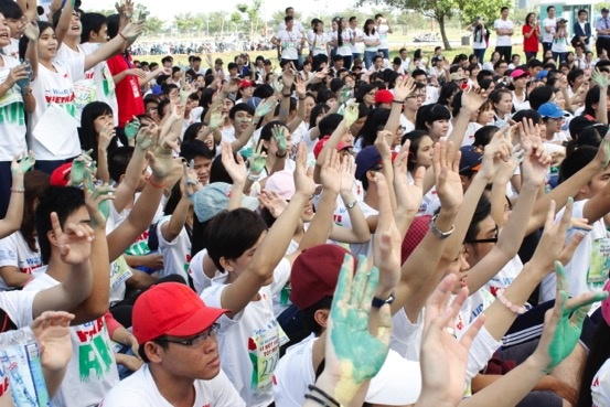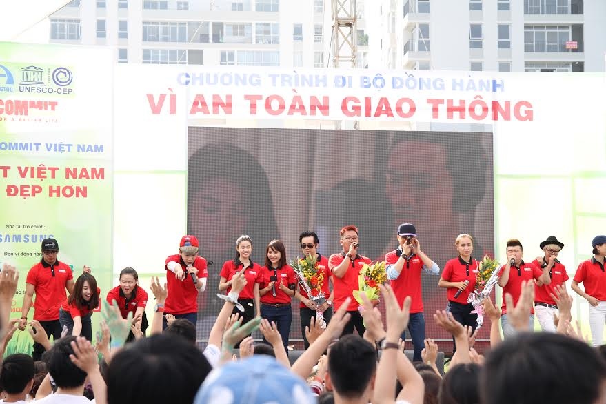 | Các nghệ sĩ hát vang bài hát Commit Việt Nam dưới sự cổ động của hàng nghìn bạn trẻ. |