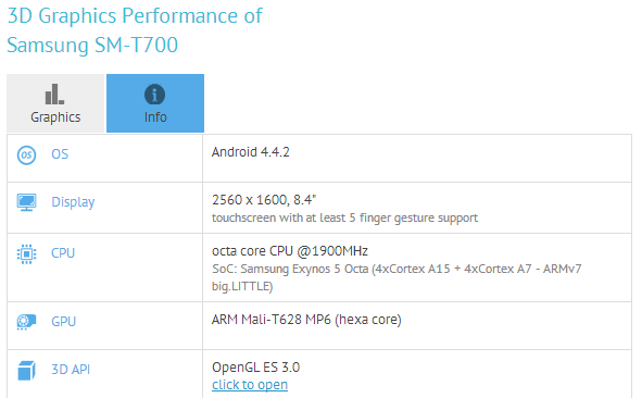 Cách đây không lâu, thông tin về chiếc máy tính bảng đầu tiên của Samsung sử dụng màn hình AMOLED đã râm ran với một thiết bị có tên mã SM-T805. Số liệu từ GFXBench cho thấy Samsung đang tích cực thử nghiệm chiếc tablet AMOLED khác có tên mã SM-T700.