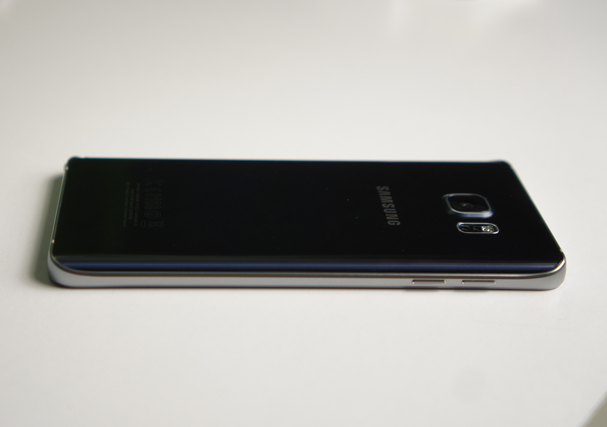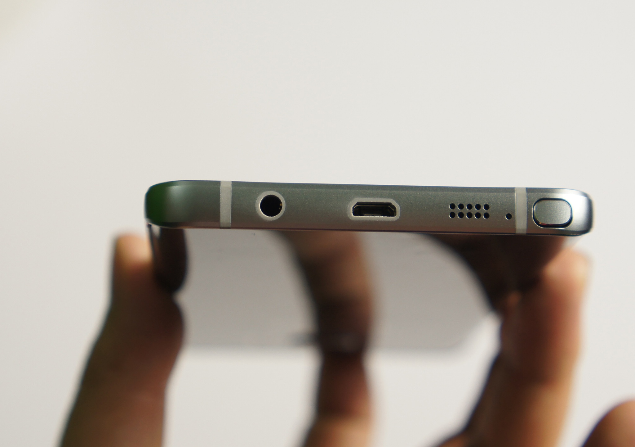 | Canh của máy được vát mỏng. Khung kim loại trên Note 5 có cùng chất liệu với bản S6 hoặc S6 Edge. |