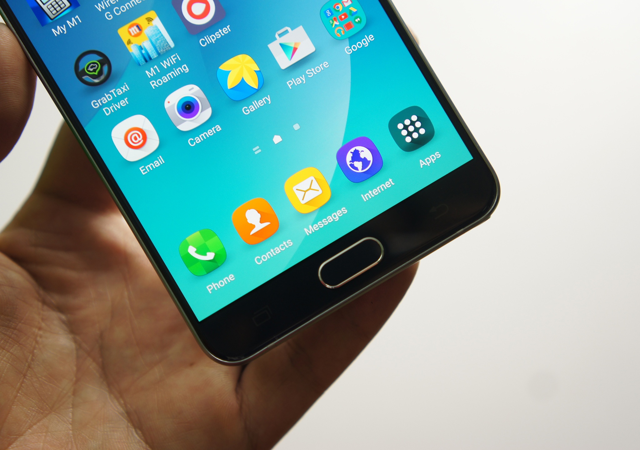 | Nút Home cứng cùng, tích hợp cảm biến vân tay của Samsung Galaxy Note 5. |