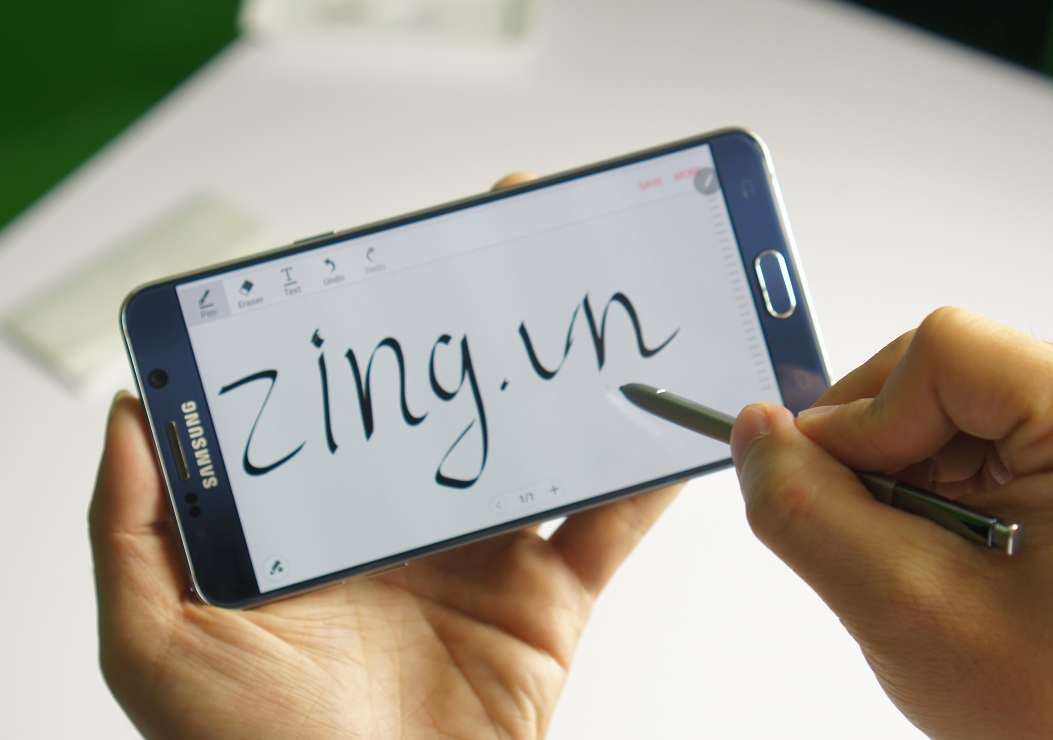 | Điểm nhấn của dòng Note là bút cảm ứng S Pen và phần mềm đi kèm. So với các thế hệ trước, S Pen trên Note 5 tỏ ra mượt và dễ thao tác hơn. Samsung cho biết, họ muốn biến S Pen giống với một chiếc bút bi thực tế. |