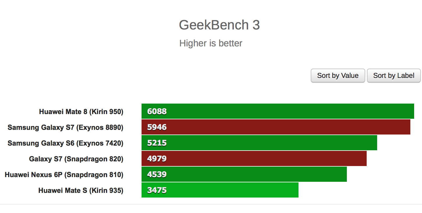Theo đó, Galaxy S7 dùng chip Exynos 8890 đạt 5.946 điểm và bản dùng Snapdragon 820 đạt 4979 điểm trong bài kiểm tra hiệu suất đa nhân. Tuy nhiên, khi trải qua bài kiểm tra hiệu suất đơn nhân, Snapdragon 820 thắng thế khi đạt 2.282 điểm, bỏ xa số điểm 1.873 của Exynos 8890.