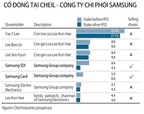 Phần còn lại thuộc về các công ty khác trong tập đoàn. Các nhà phân tích cho biết, nhóm cổ đông không nằm trong gia tộc có thể bán cổ phiếu trong đợt IPO sắp đến và để cho gia đình Lee nắm quyền toàn bộ.