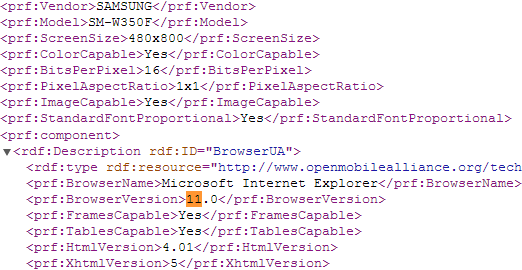 Thông tin về một chiếc điện thoại mới vừa xuất hiện trong UA Profile tại trang web của Samsung. Thiết bị này có tên mã SM-W350F, màn hình độ phân giải WVGA (480 x 800 pixel) cùng với trình duyệt Internet Explorer 11 - một trong những tính năng mới sẽ có mặt trên Windows Phone 8.1.