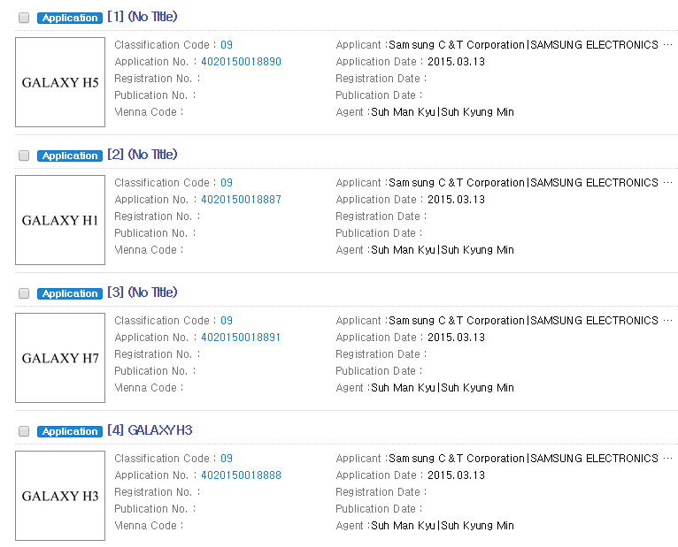 Trong danh sách đăng ký thương hiệu còn có thêm hai thiết bị khác là Galaxy H5 và Galaxy H3. Từ khi nộp hồ sơ bảo hộ thương hiệu đến lúc chính thức giới thiệu sản phẩm ra thị trường là một chặng đường dài. Từng có không ít thiết bị tuy được đăng ký thương hiệu nhưng vẫn không có dịp ra mắt người dùng.