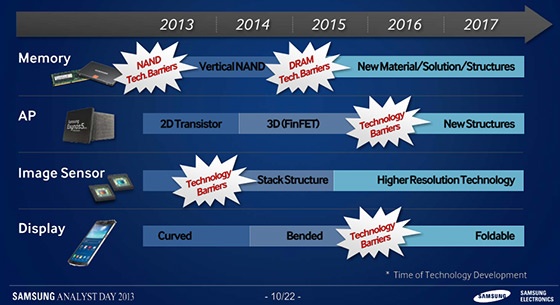Trong bài trình bày của mình, Samsung nhấn mạnh về việc hãng đã bán được hơn 100 triệu chiếc của Galaxy S và thiết bị cầm tay. Trong năm 2013, cùng với dự báo các thiết bị đeo tay sẽ là xu hướng công nghệ mới, Samsung trở thành nhà sản xuất đầu tiên “lấn sân” sang lĩnh vực này với đồng hồ thông minh Galaxy Gear. Nhưng để có thể duy trì tới năm 2015, thậm chí là 2016, sản phẩm này cần nhiều cải tiến hơn như màn hình linh hoạt hơn và có thể gập lại được.