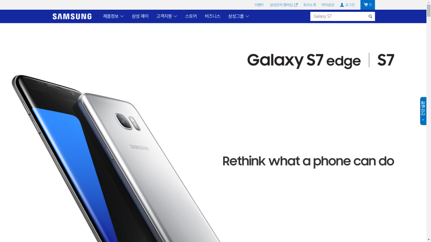 | Logo Samsung trên Galaxy S7 và S7 edge đã bị xóa bỏ trên trang web của hãng tại Hàn Quốc. |