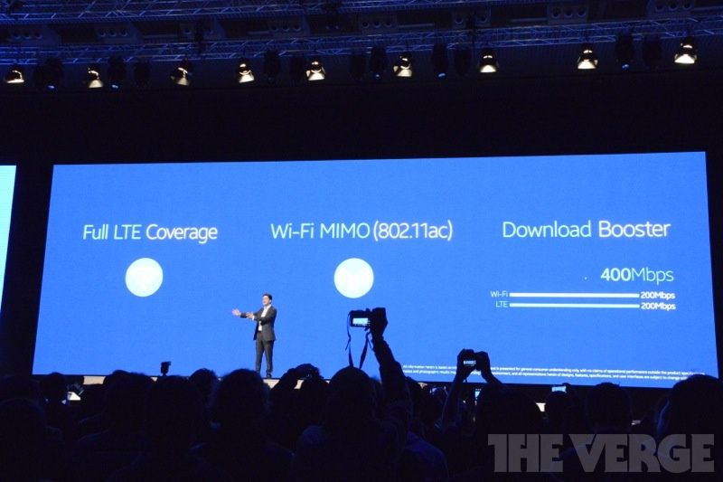 | Galaxy S5 cũng là chiếc điện thoại có khả năng kết nối tốt nhất hiện nay khi là thiết bị đầu tiên hỗ trợ chuẩn Wi-Fi MIMO (802.11ac), mạng 4G và phần mềm tăng tốc độ download lên đến 400 Mb/s. |