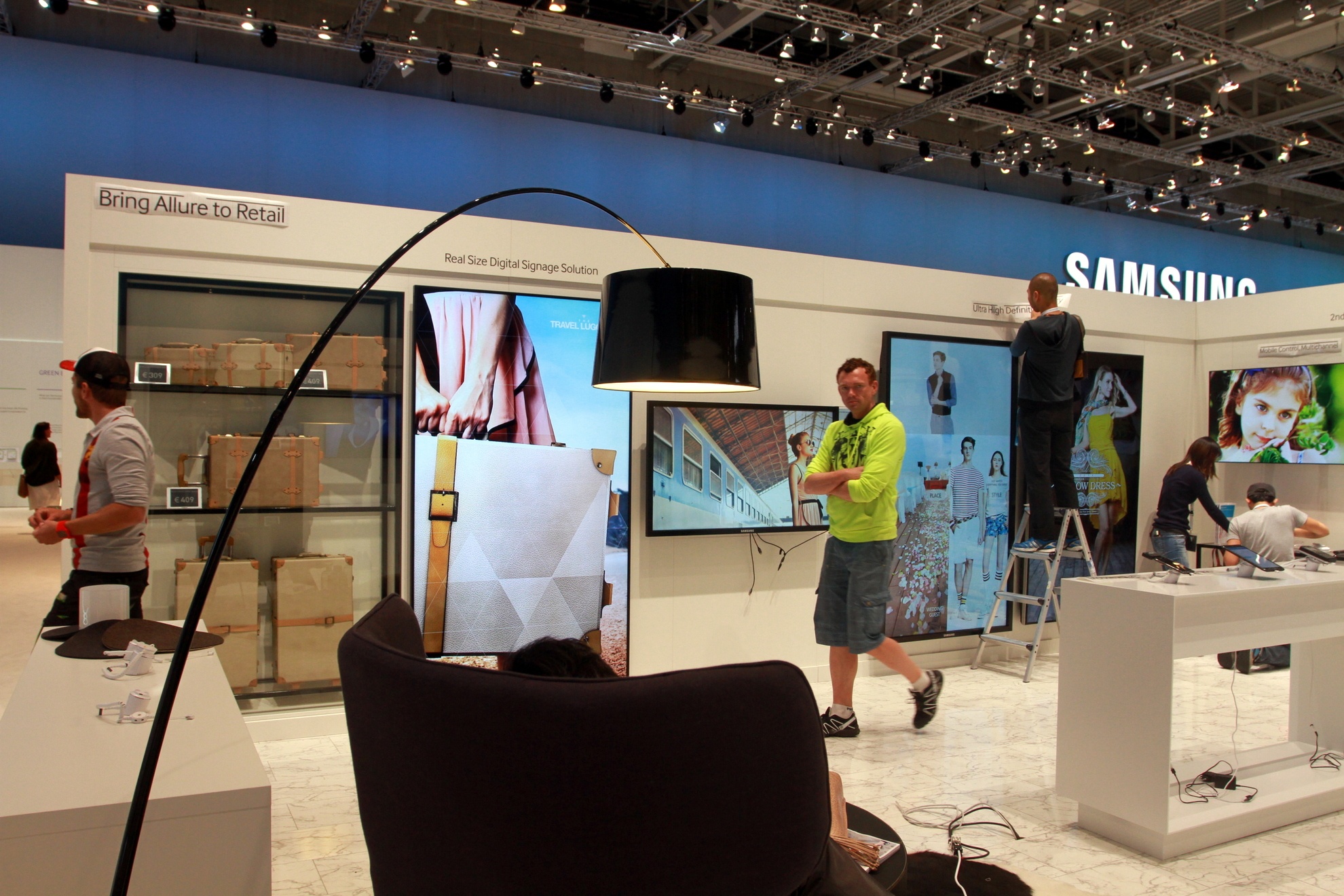 | IFA năm nay chứng kiến sự mở rộng của Samsung trên nhiều lĩnh vực công nghệ. Ngoài các mẫu Note được chú ý, hàng chục mẫu TV màn hình cong dựng tràn khu triển lãm, thì Nhà thông minh - Smart Home với các sản phẩm điện lạnh, gia dụng cũng được họ phô diễn trong gian hàng lớn. |