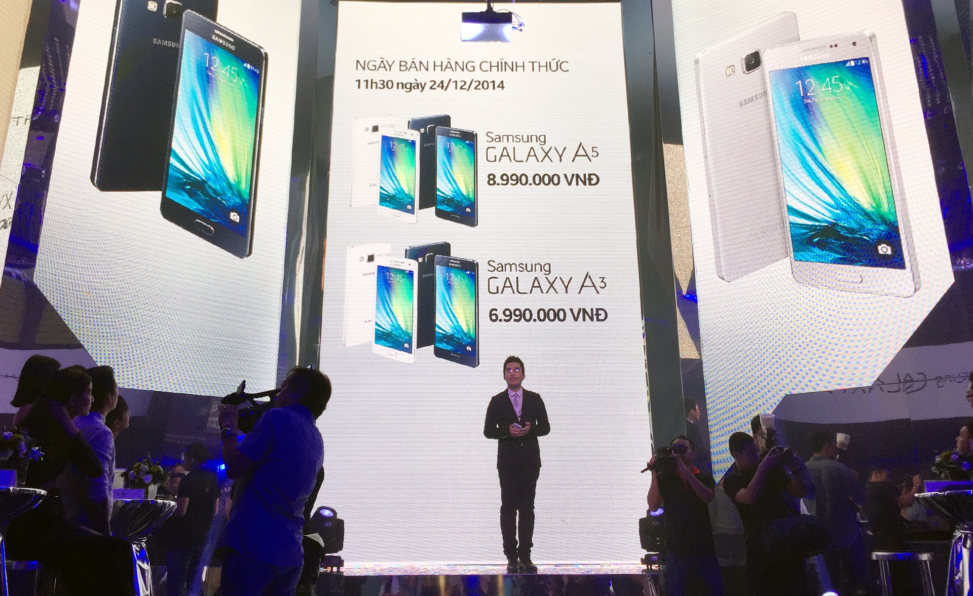 Theo Samsung, Galaxy A3 sẽ được bán với giá 6,99 triệu đồng và Galaxy A5 có giá 8,99 triệu đồng. Cả hai sẽ bắt đầu lên kệ tại các đại lý từ ngày mai. Dưới đây là những hình ảnh của sự kiện ra mắt bộ đôi smartphone mới này.