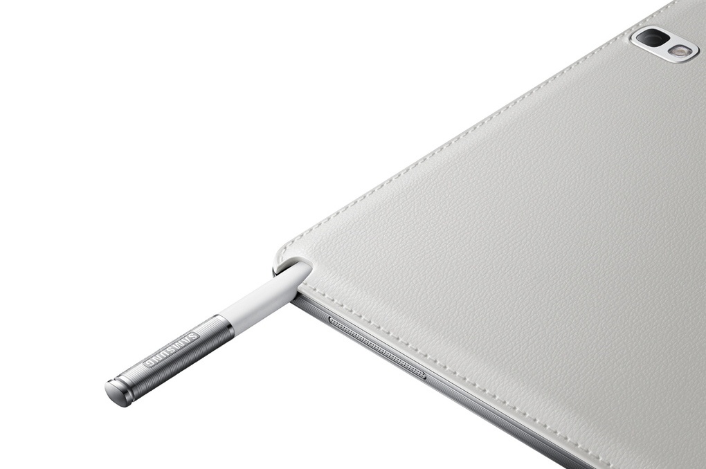 | Bút S-Pen của Note 10.1 cũng tương tự như S-Pen trên Note III. Mặt sau của máy cũng có lớp vỏ da. |