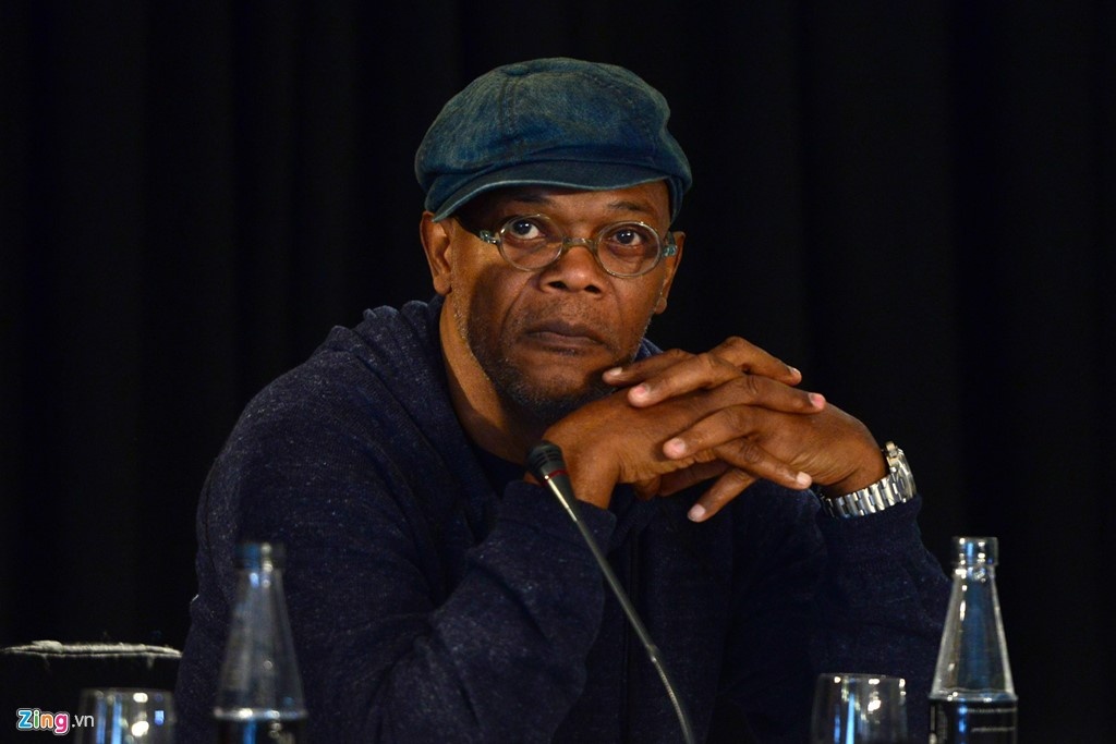 | Samuel trong buổi họp báo giới thiệu dự án Kong: Skull Island tại Hà Nội. Ảnh: Tuấn Mark |