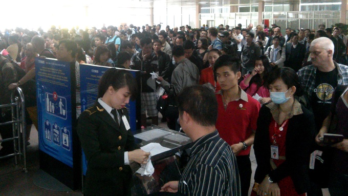 12h ngày 24/1, khu vực giải quyết vướng mắc thủ tục cho hành khách của Vietnam Airlines đông nghẹt hành khách đang cầm vé trong tay nhưng mặt mũi hớt ha hớt hải vì bị từ chối cho lên máy bay do ra sân bay trễ so với thời điểm khóa sổ làm thủ tục. Đại diện cả Vietnam Airlines, VietJet Air, Pacific Airlines đều cho biết những ngày này phải chấp nhận cất cánh chậm để chờ khách, nhưng tình trạng khách đến trễ vẫn diễn ra.