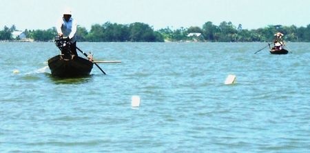 | Thả lưới săn cá bông lau trên cù lao Tân Qui. |