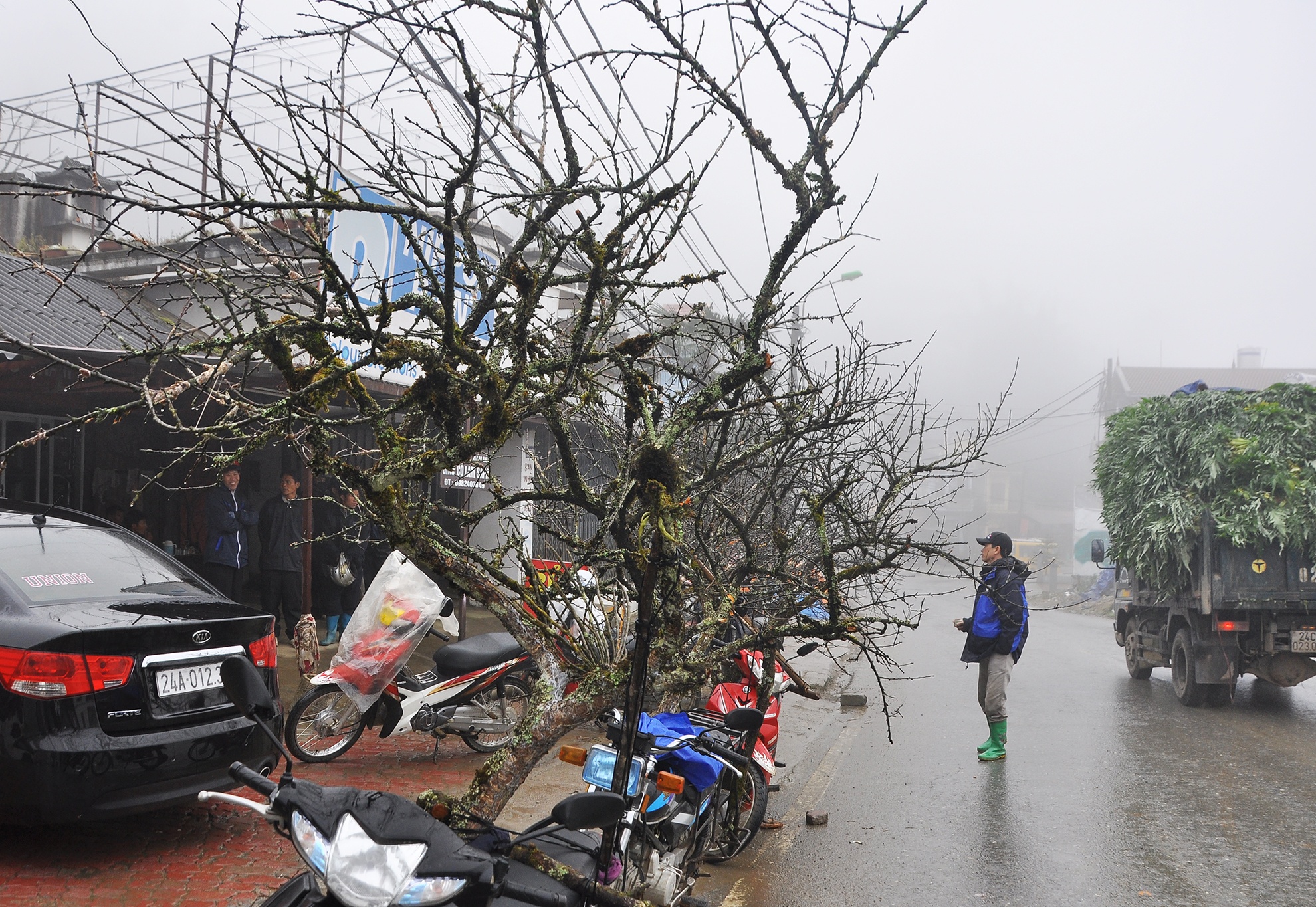 Hai tuần trước Tết Nguyên đán, hàng chục người dân bản các xã Tả Phìn, Sa Pả, Trung Chải, Lao Chải (thị trấn Sa Pa, Lào Cai) tấp nập chở đào rừng cổ thụ, rêu phong ra đường quốc lộ bán cho khách du lịch. Đây là những cành đào được họ săn tìm trên các vách núi, sườn đồi cao.