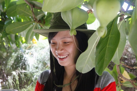 Những khách du xuân từ đất liền say mê ghi lại vẻ đẹp của hoa bàng vuông. Ảnh: HT. |
