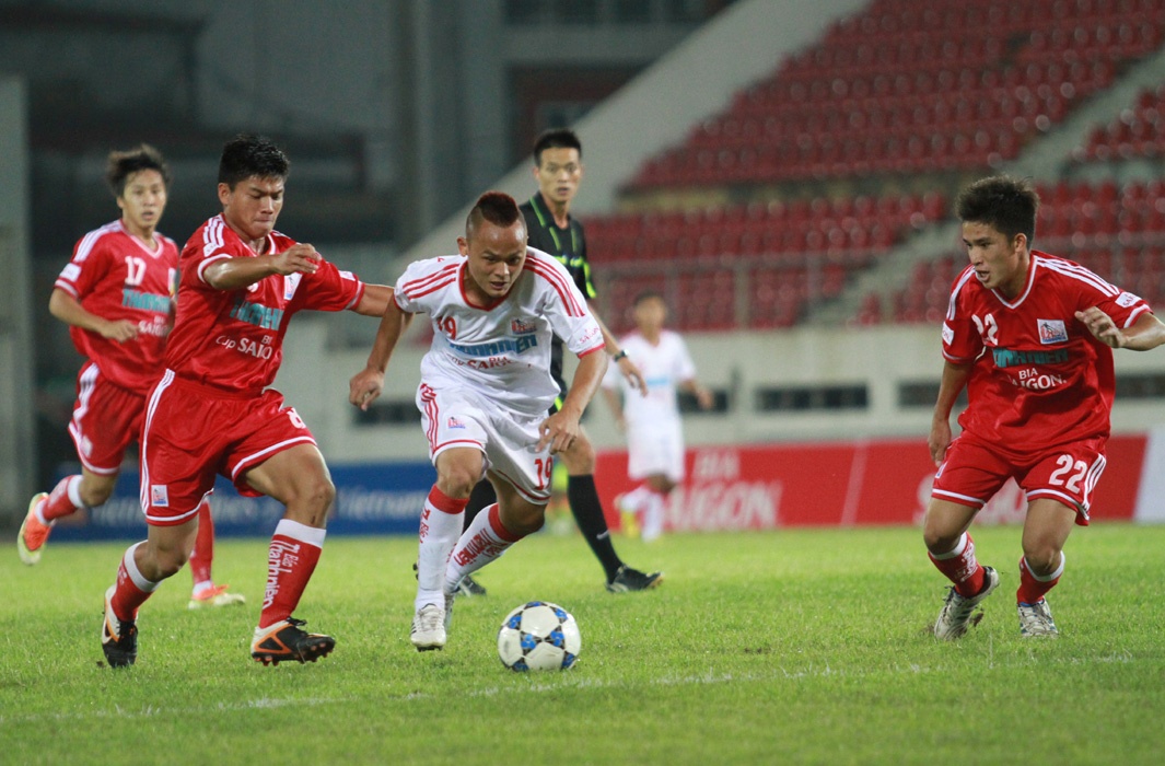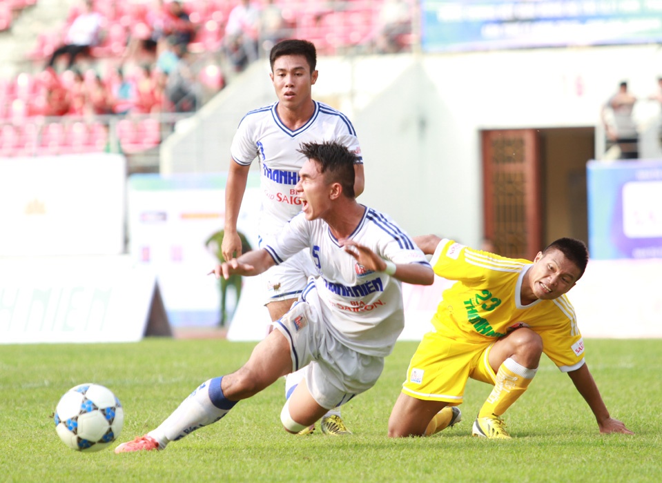 | Ngoài ra, đội V.Hải Phòng cũng "ít chất" Hải Phòng. Có tới 5 trong tổng số 11 cầu thủ đá chính của đội bóng đất Cảng trong trận ra quân gặp TP.HCM là vừa được "mượn nóng" để đá giải U21 quốc gia. Trong hình là cầu thủ Quốc Phương được V.Hải Phòng mượn từ Thanh Hóa (áo trắng). |