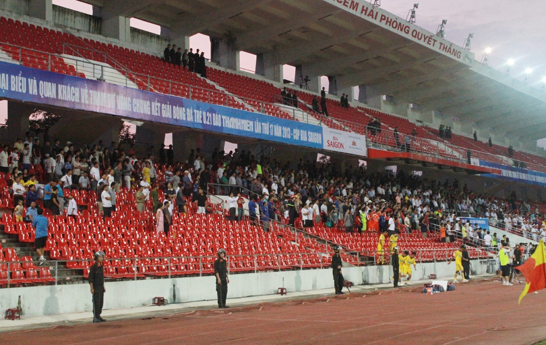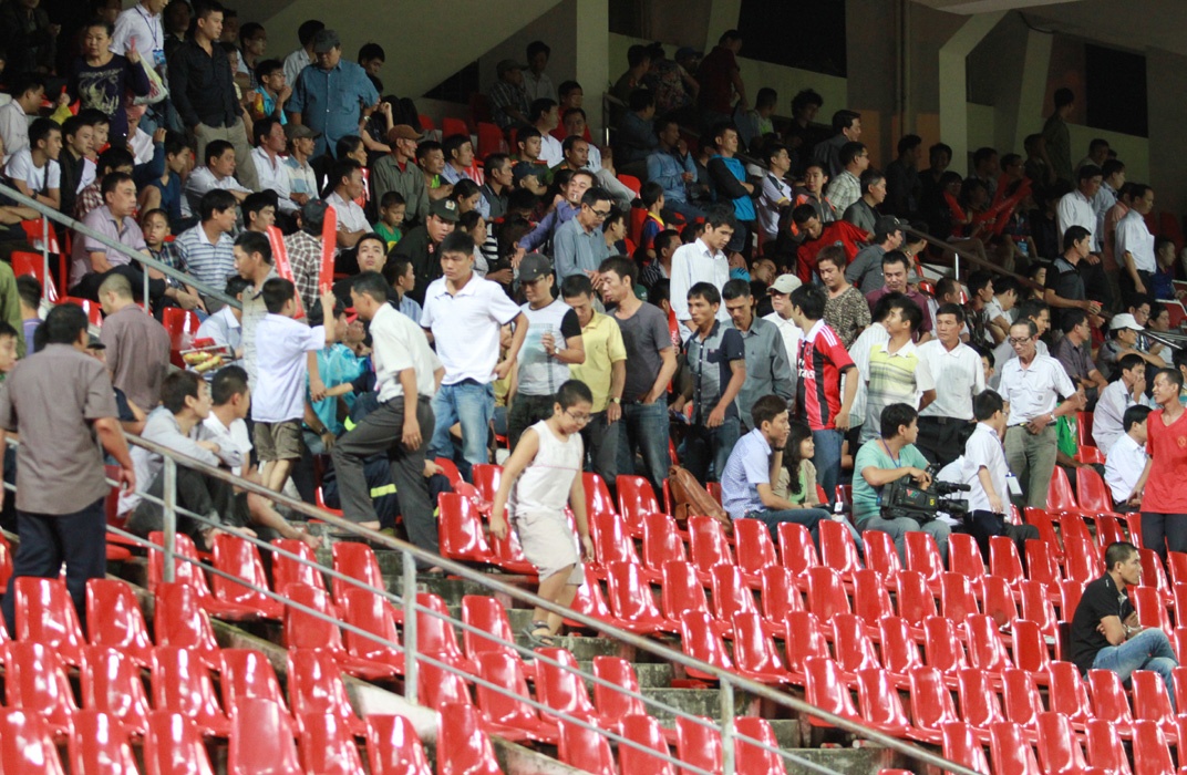 | Một số khán giả bỏ về khi trận đấu giữa V.Hải Phòng và TP.HCM mới chỉ kết thúc hiệp một. |
