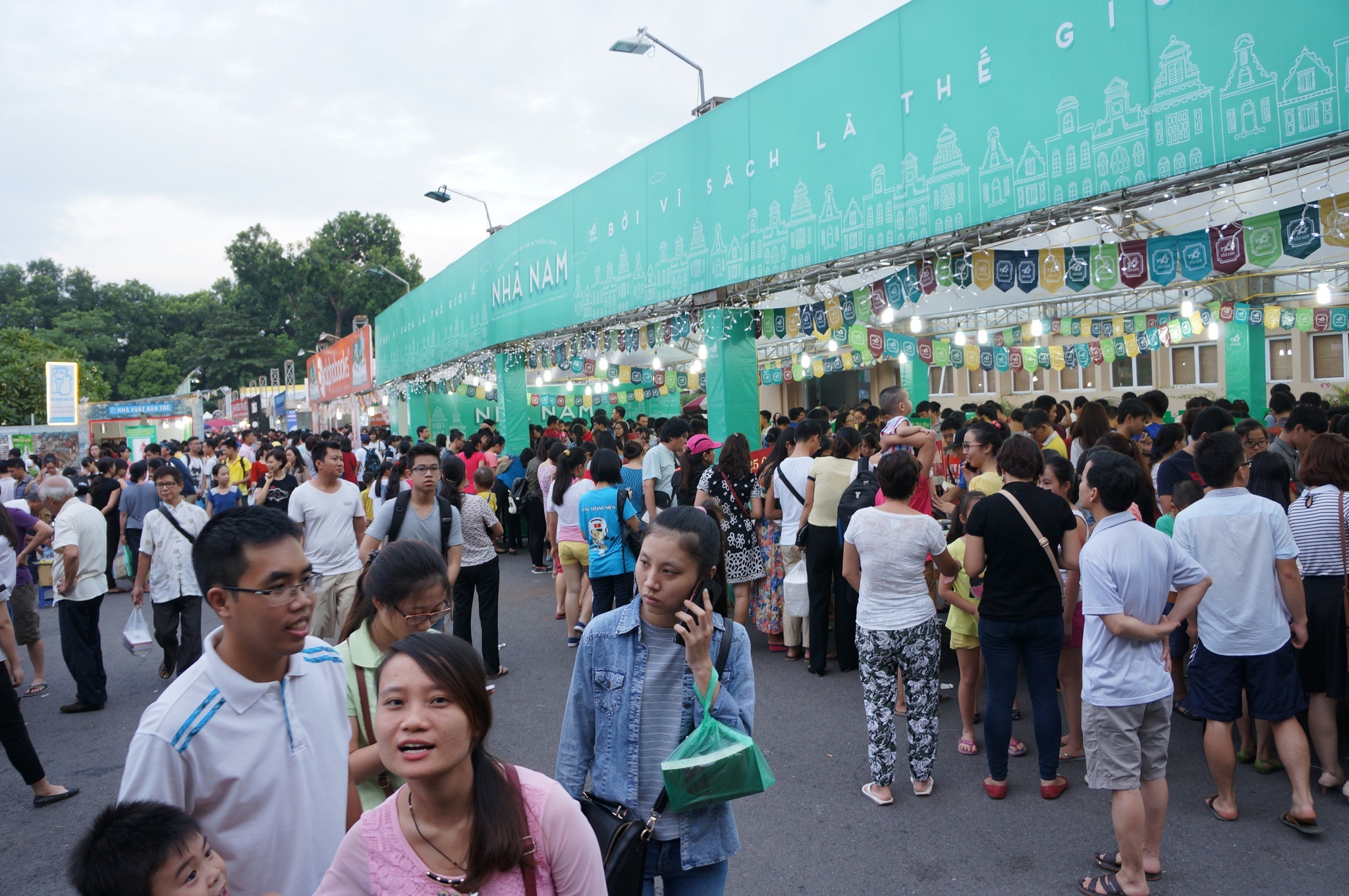 | Tại hội chợ sách Hoàng Thành có rất đông độc giả tìm kiếm Tôi thấy hoa vàng trên cỏ xanh. |