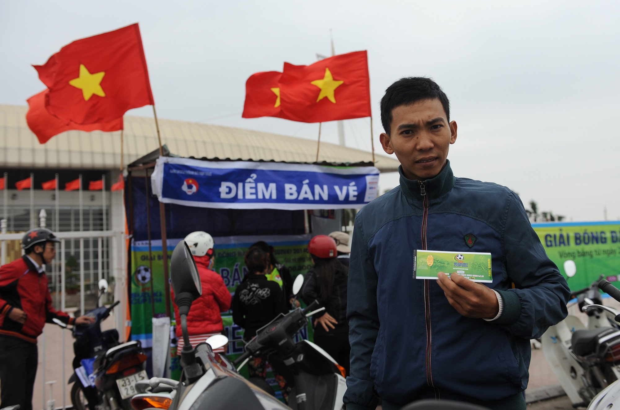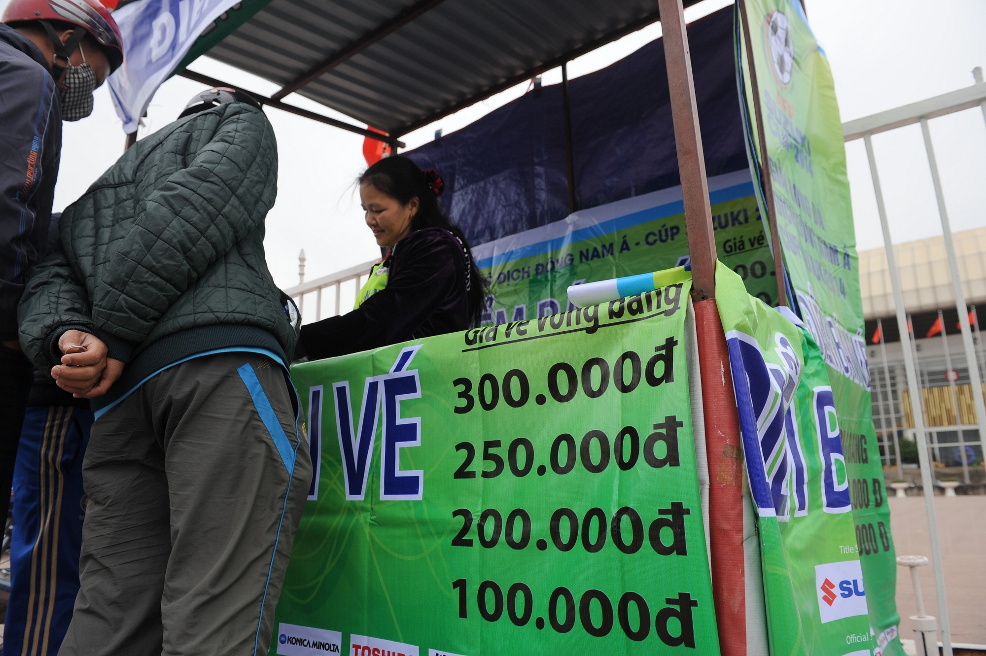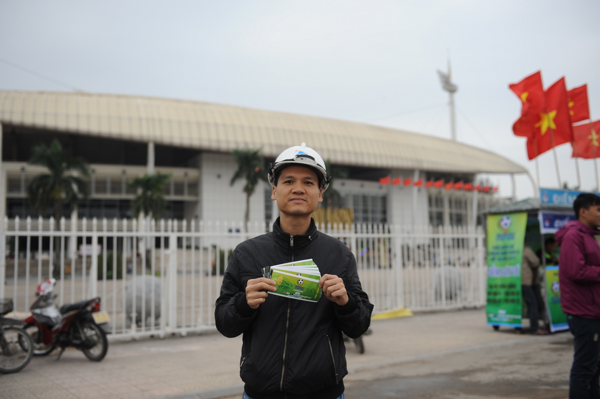 | Điểm bán vé ở sân Hàng Đẫy cũng không quá đông. Vé vẫn còn cả tập trên tay người bán vé nên người hâm mộ có thể được mua giá gốc. |