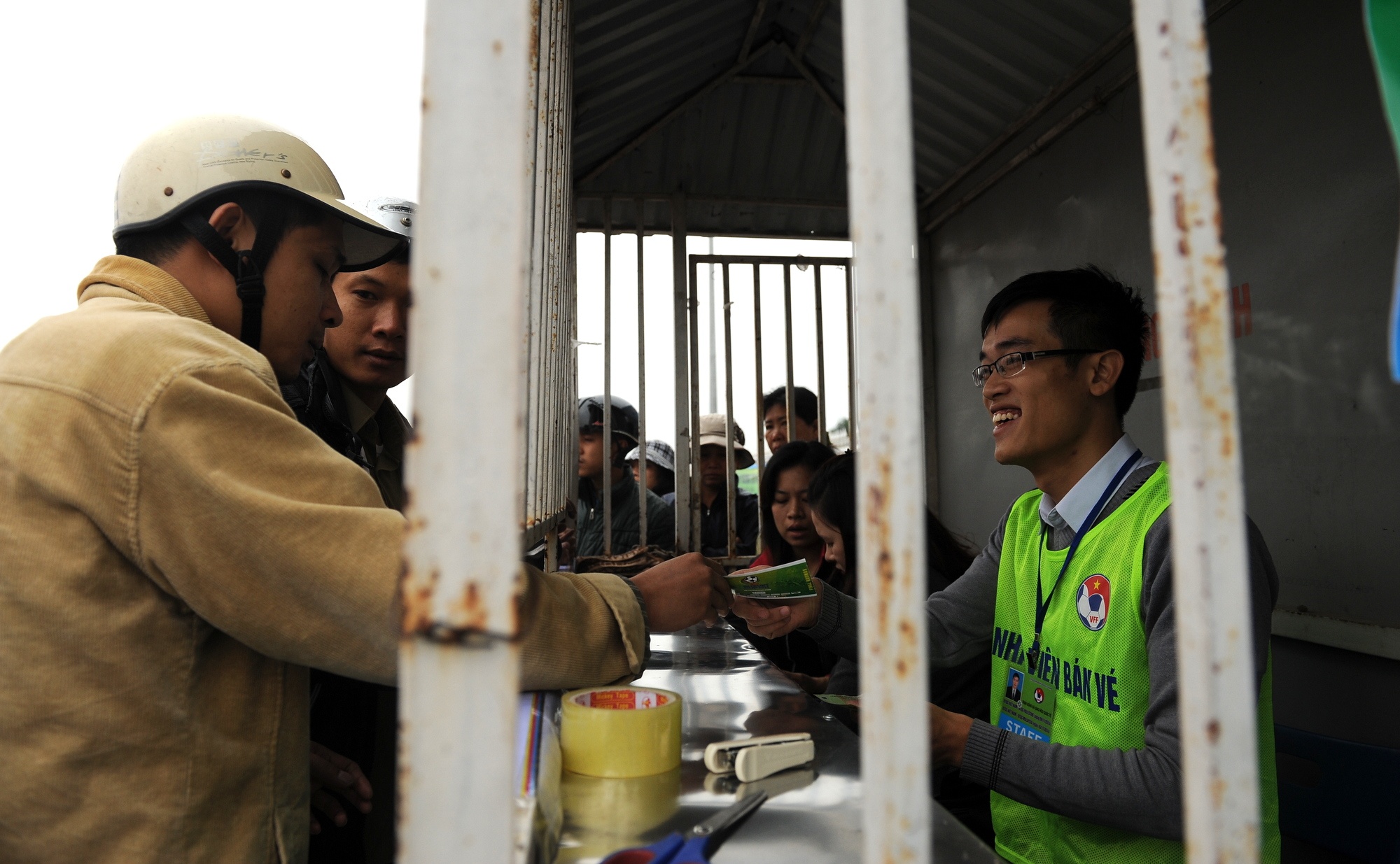 | Năm nay quy trình in vé và soát vé có nhiều điểm mới nên người hâm mộ sau khi mua thường phải nán lại để được nhân viên bán vé hướng dẫn. Nhân viên bán vé hướng dẫn người mua 3 quy trình soát vé để có thể vào trong SVĐ Mỹ Đình. |