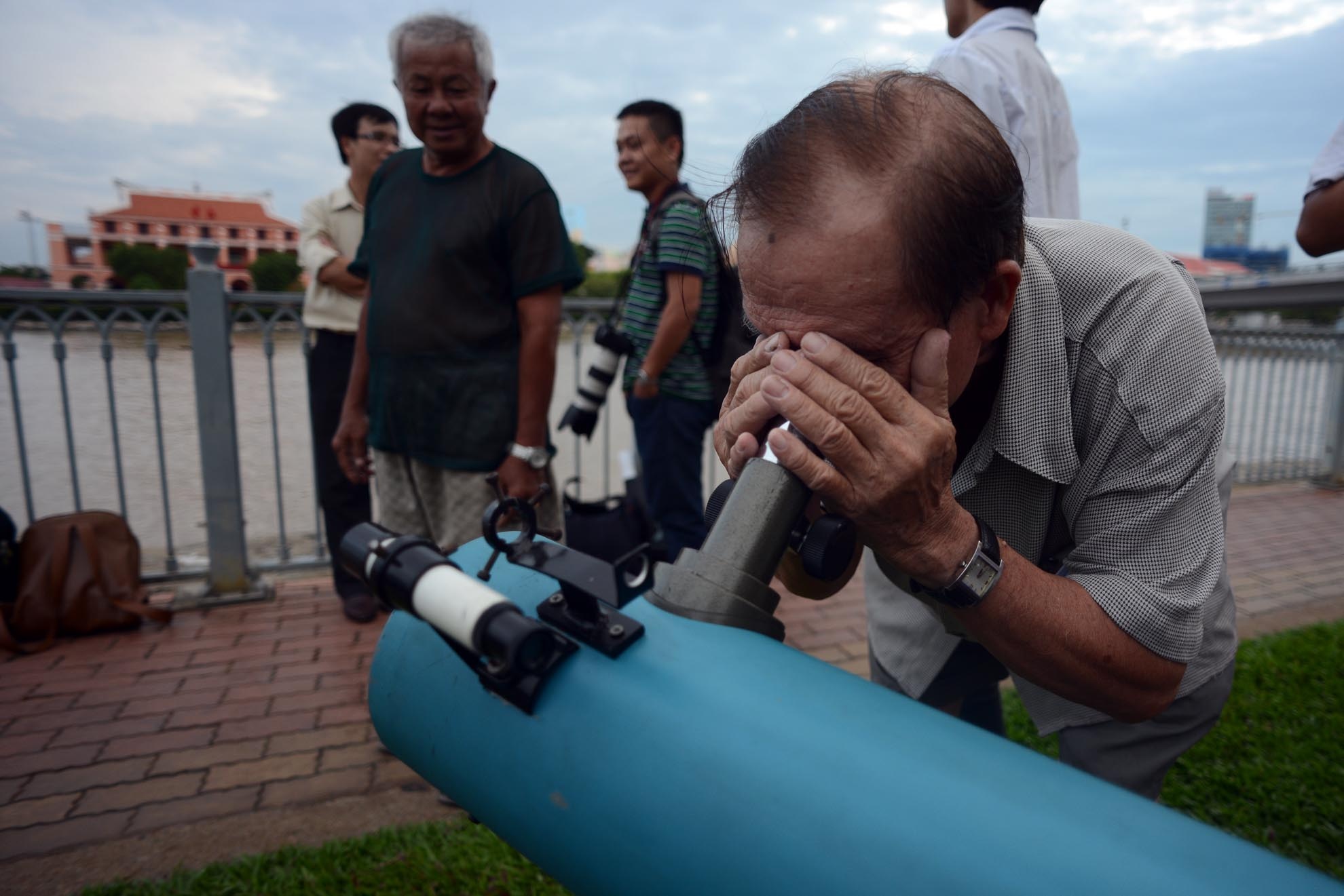 Cùng lúc, ở TP.HCM, CLB Thiên văn Nghiệp dư tại đây cũng tổ chức cho các thành viên và người dân theo dõi cạnh chân cầu Khánh Hội, quận 1.