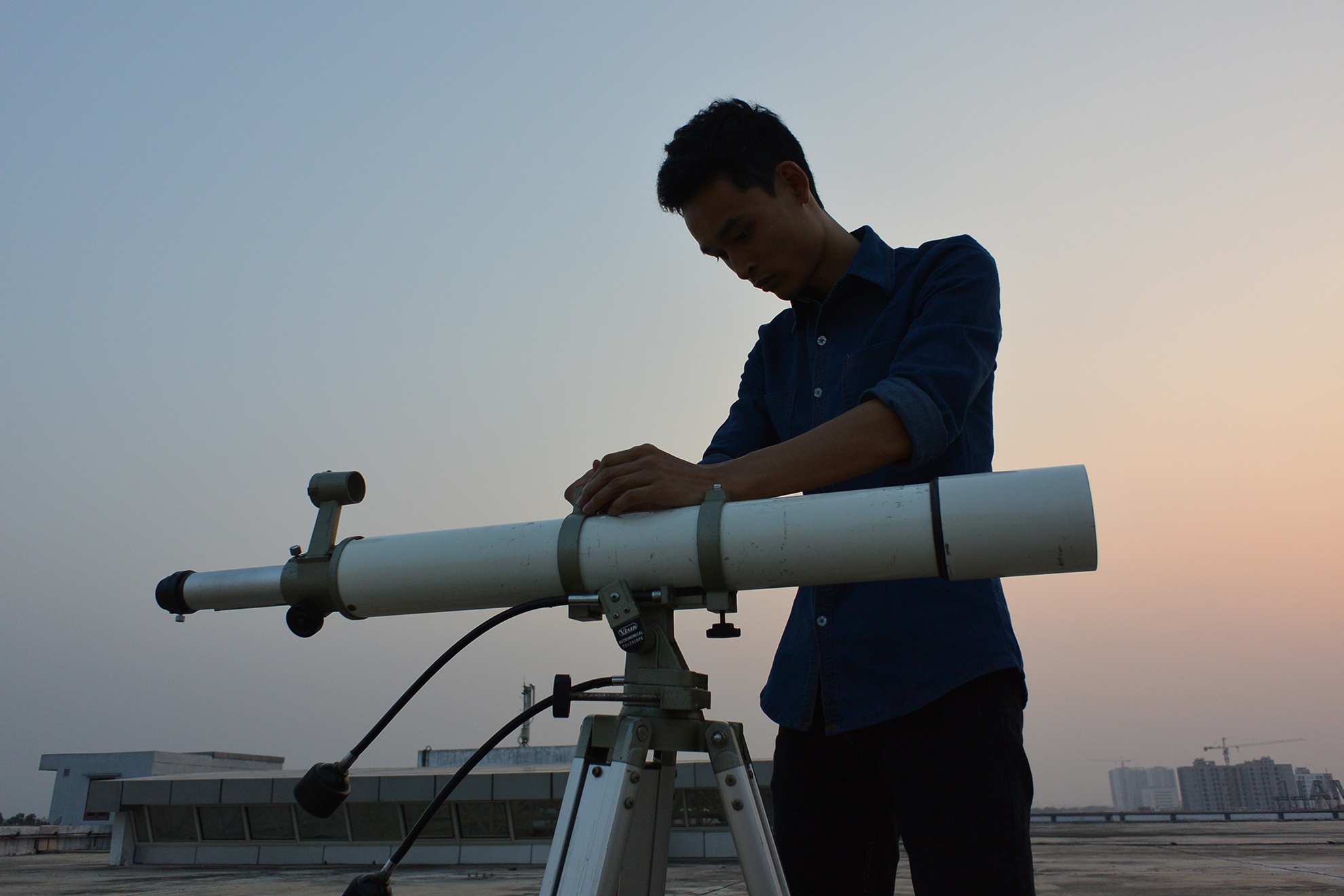 Chiều 8/10, các thành viên Câu lạc bộ thiên văn học nghiệp dư Hà Nội có mặt tại địa điểm quan sát nguyệt thực toàn phần - trăng máu trên tầng thượng một toà nhà ở quận Long Biên.