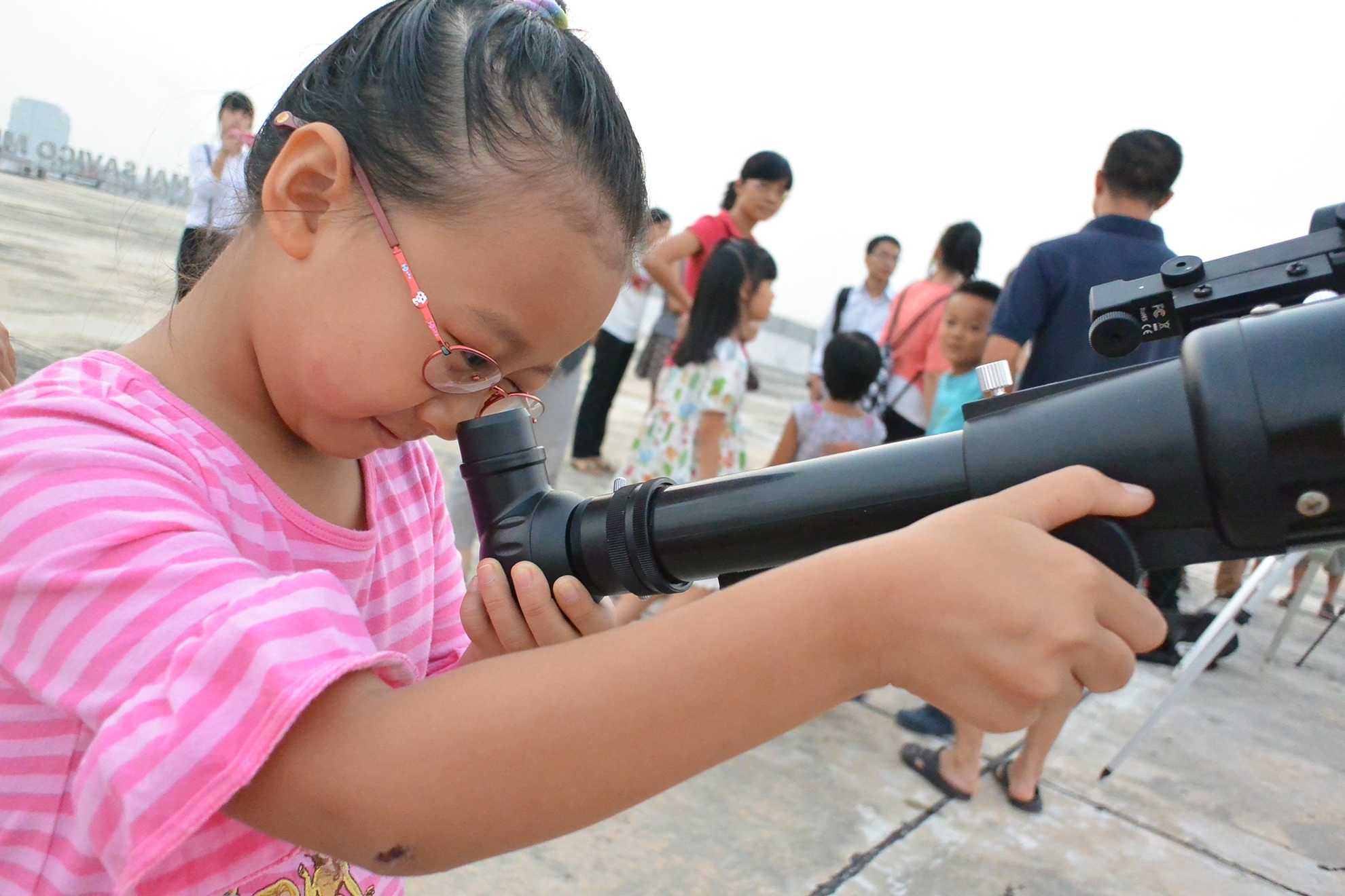 Rất nhiều người đã có mặt để chiêm ngưỡng hiện tượng kỳ lạ một năm chỉ có 2 lần trên thế giới này. Các em nhỏ cũng được bố mẹ đưa đến để quan sát cũng như giúp con mình có cái nhìn thực tế về thiên văn học và tự nhiên.