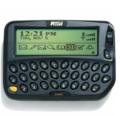 Thiết bị Research In Motion Limited (RIM) đầu tiên ra đời có tên gọi Inter@active Pager 900. Đây là một món đồ công nghệ dạng vỏ sò giúp người dùng có thể sử dụng nhắn tin được hai chiều. Sau đó 2 năm, vào năm 1988, IBM muốn tặng một sản phẩm cao cấp cho các khách hàng lớn của mình vì vậy họ đặt hàng rất nhiều chiếc Inter@active Pager 800 với tổng trị giá đơn hàng lên tới 10 triệu USD.