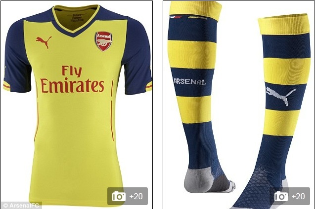 | Mẫu áo sân khách màu vàng hướng về quá khứ. Pháo thủ từng giành 2 lần vô địch FA Cup 1971 và 1979 trong màu áo này. |