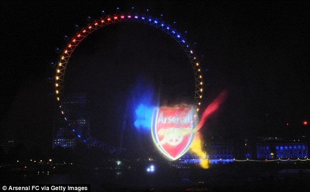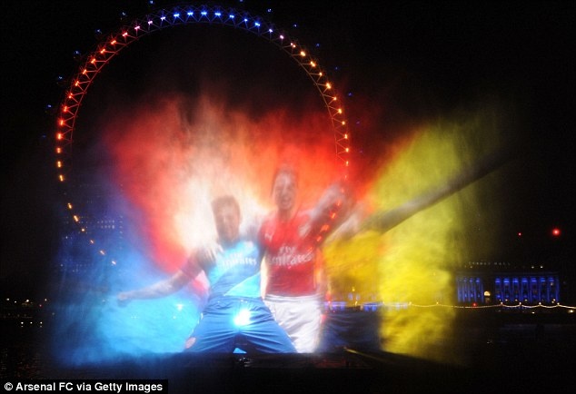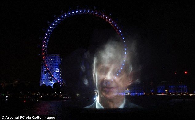 | Hình ảnh của HLV Arsene Wenger được chiếu lên trong dự án quảng cáo của hãng Puma có chiều cao lên tới 20 m. |