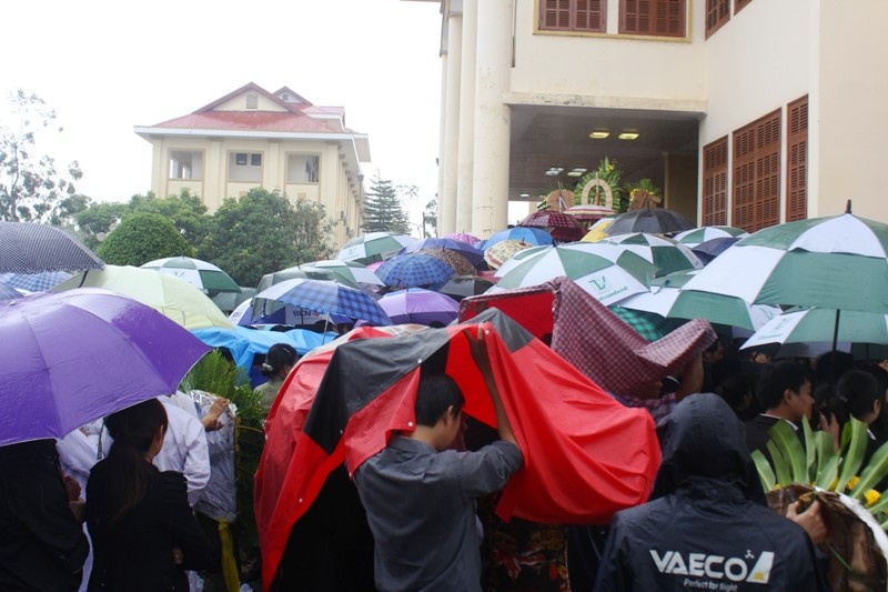 Từ sáng sớm, trời đã bắt đầu có mưa nhưng người dân đã có mặt rất sớm trước giờ lễ viếng bắt đầu.