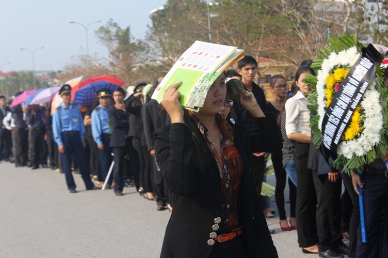 | Cái nắng chói chang trong lúc chờ viếng. |