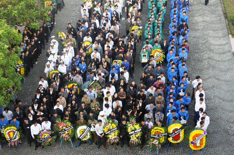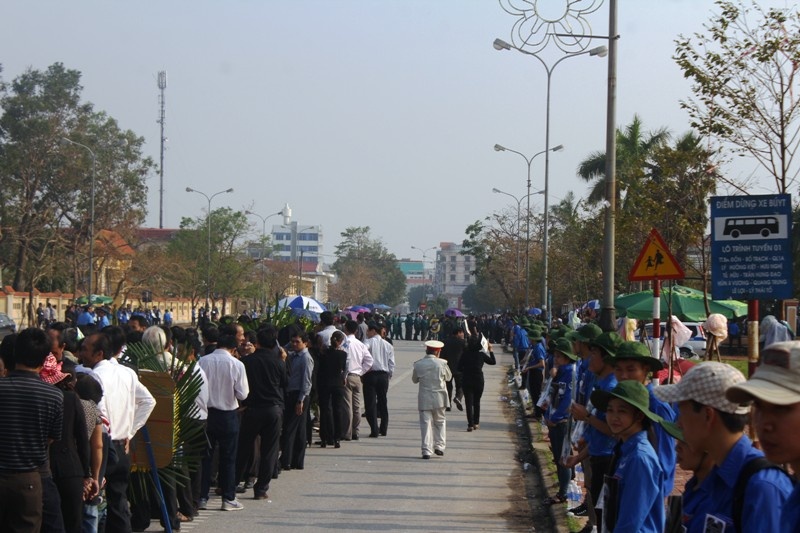 | Buổi chiều trời lại nắng gay gắt, tuy nhiên đoàn người đến viếng vẫn rất đông. |