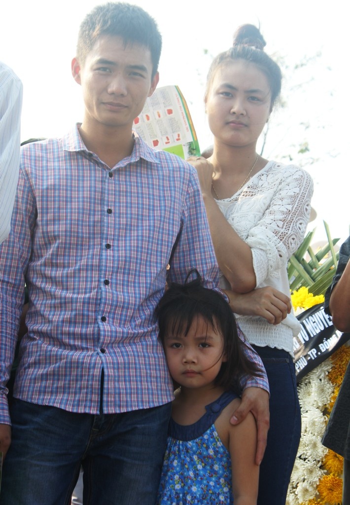 | Chị Dương Thị Nam Phương đưa con gái là Nguyễn Mỹ Huyền cùng người em ruột xếp hàng gần cuối lo sợ không được vào viếng Đại tướng vì đoàn người còn quá dài mà thời gian viếng lại đang gần hết. |
