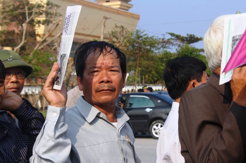 | Đoàn người kéo dài hơn 1km, dọc theo đường Quang Trung (quốc lộ 1A). |
