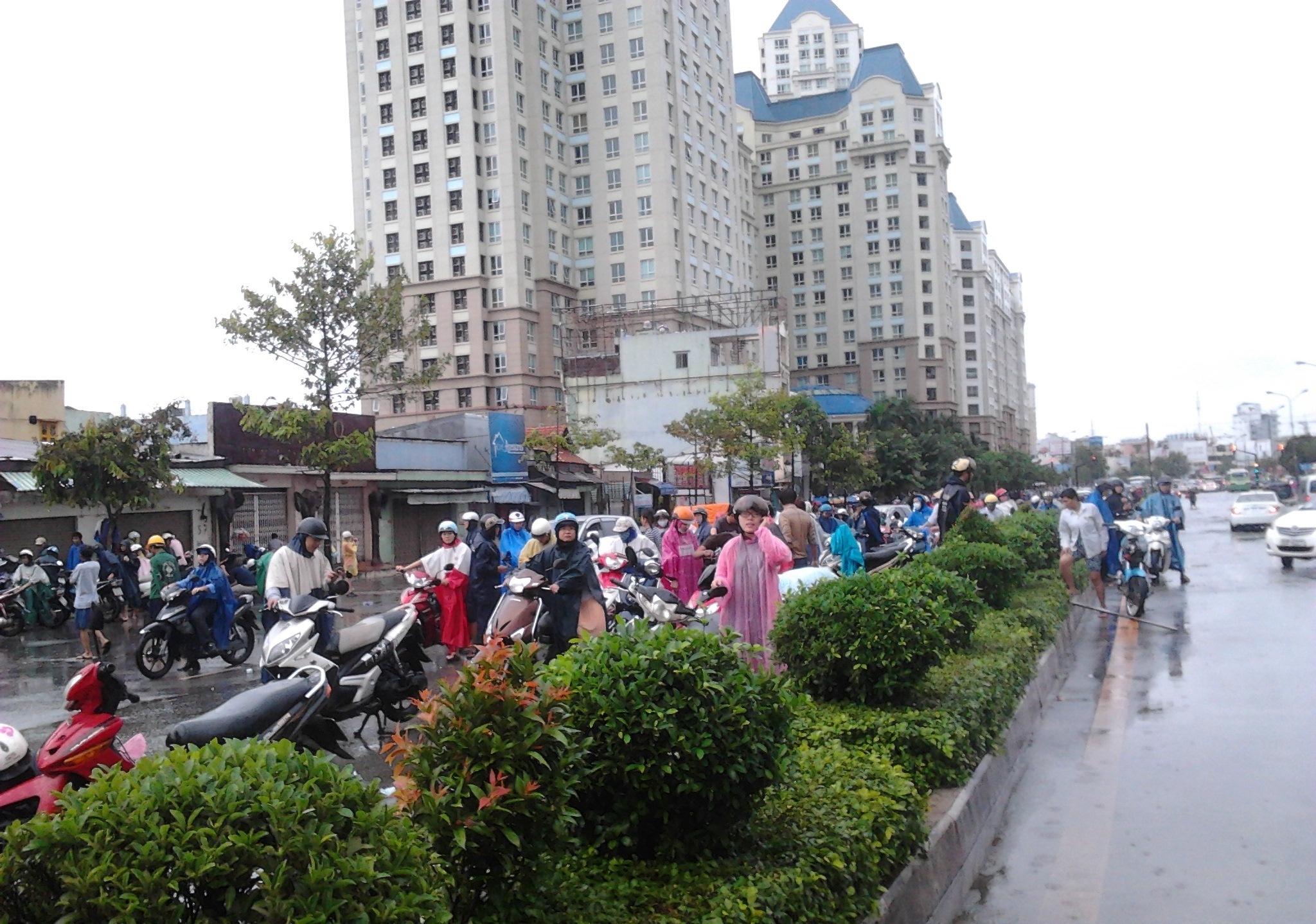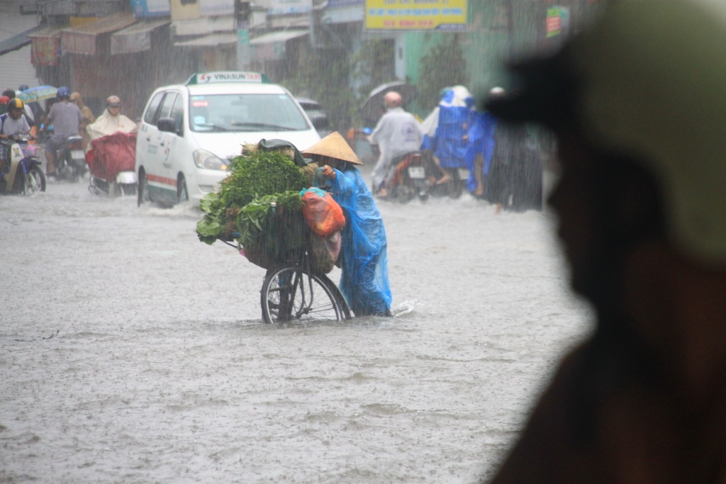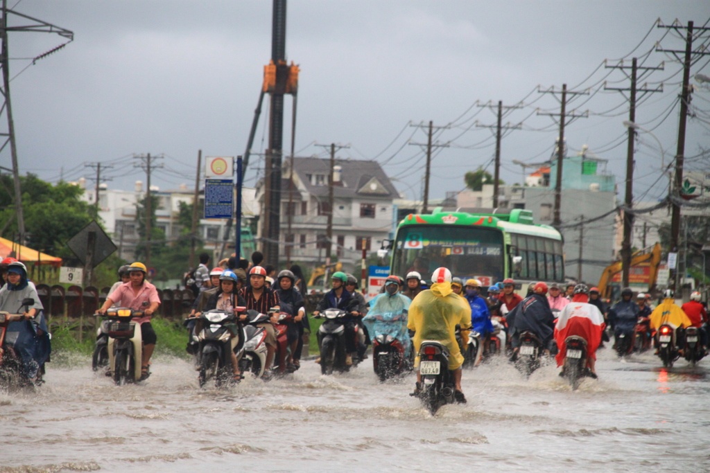 Sáng sớm người Sài Gòn đội mưa, lội nước đi làm