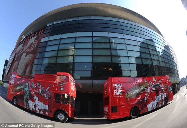 | Chiếc xe buýt chở thầy trò HLV Wenger qua các đường phố ở Bắc London. |