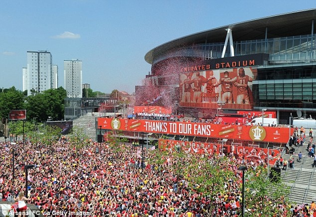 | Hình ảnh trước sân Emirates trong buổi ăn mừng chức vô địch FA Cup của Arsenal. |