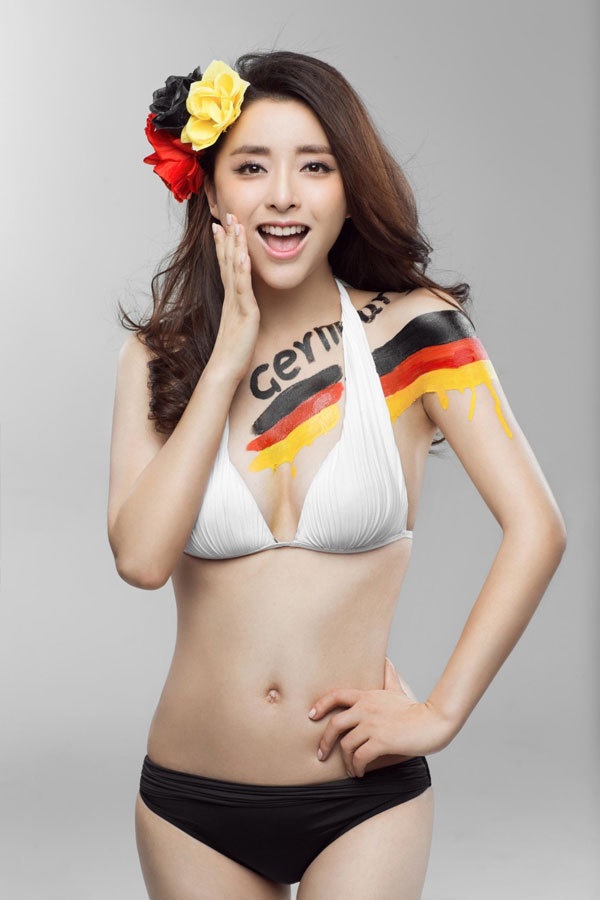 | Hoàng Tiểu Lôi quyến rũ trong một bộ ảnh chào World Cup mới đây. |