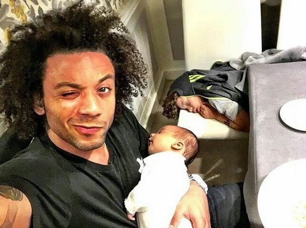 | Marcelo tranh thủ selfile khi 2 con đang ngủ ngon lành. |