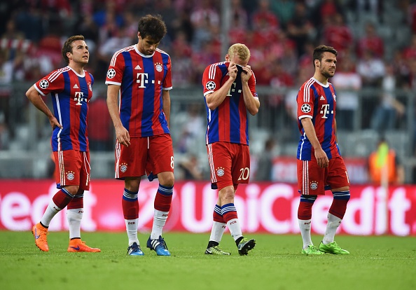 | Dàn sao Bayern thất vọng sau trận đấu trên sân Allianz Arena. |