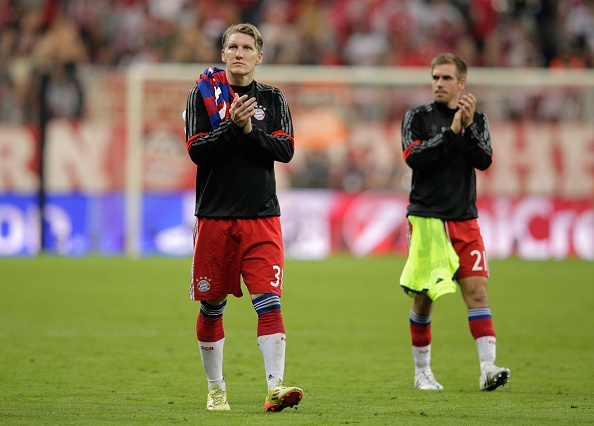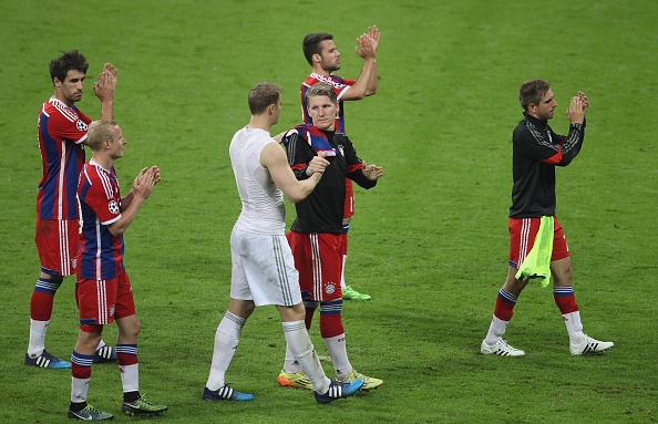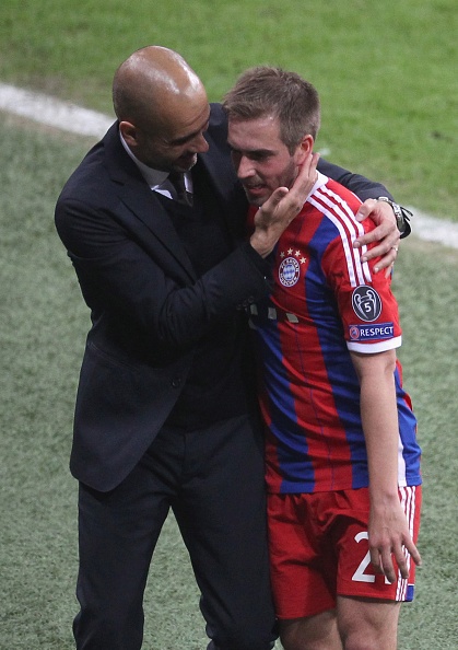 | Vị thuyền trưởng người Tây Ban Nha động viên thủ quân Philipp Lahm sau trận bán kết lượt về Champions League diễn ra trên sân nhà Allianz Arena. |