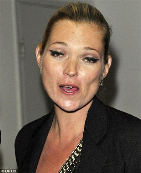 | Những ngày mới vướng vào ma túy, Kate Moss già đi nhanh chóng. Hai má cô bị hóp lại hơn so với hồi trẻ rất nhiều. |