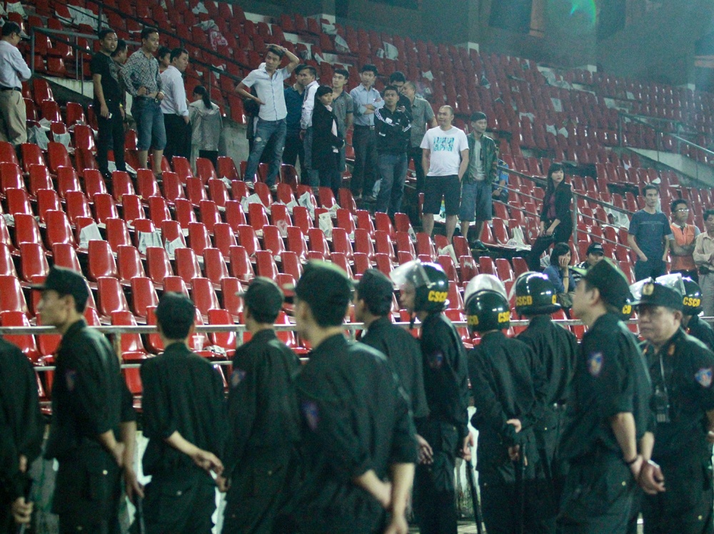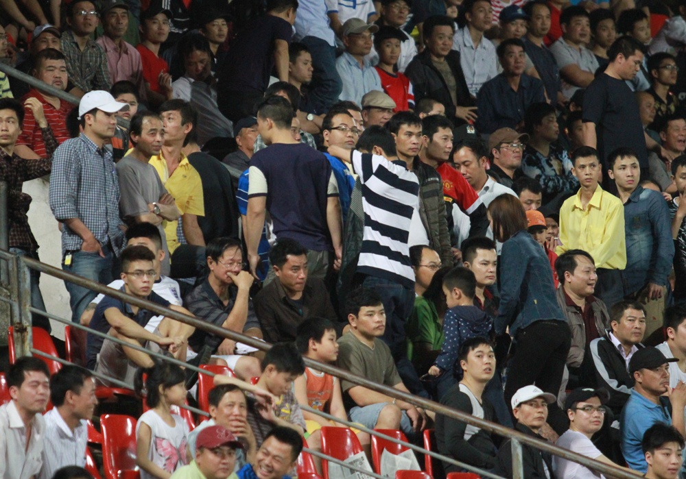 Một số CĐV đất Cảng nán lại chửi trọng tài sau khi tiếng còi kết thúc trận đấu vang lên.