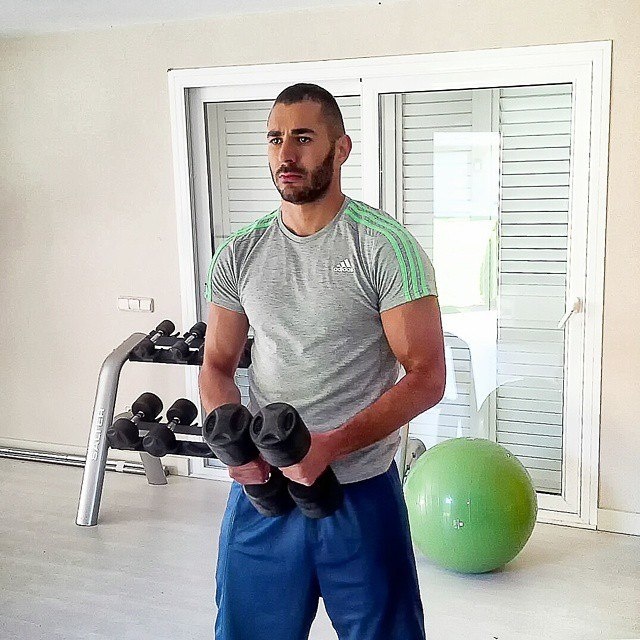 | Benzou khoe thân hình rắn rỏi, cơ bắp trong phòng tập gym. |