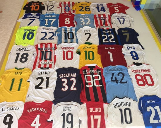 | Pique khiến người hâm mộ thích thú với bộ sưu tập áo đấu của các cầu thủ nổi tiếng. "Đang dọn tủ. Đây là áo đấu của một vài cầu thủ mà tôi đã từng có cơ hội được gặp trên sân cỏ. Các bạn thích ai nào? - ngôi sao Barca hồ hởi chia sẻ tới người hâm mộ. |
